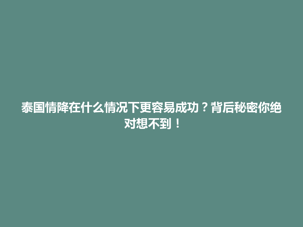 江都区泰国情降在什么情况下更容易成功?背后秘密你绝对想不到!